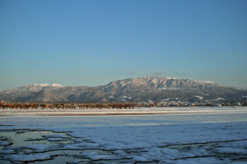 ▼山形市郊外より蔵王山系(宮城県方面)を望む。(3/18夕方)