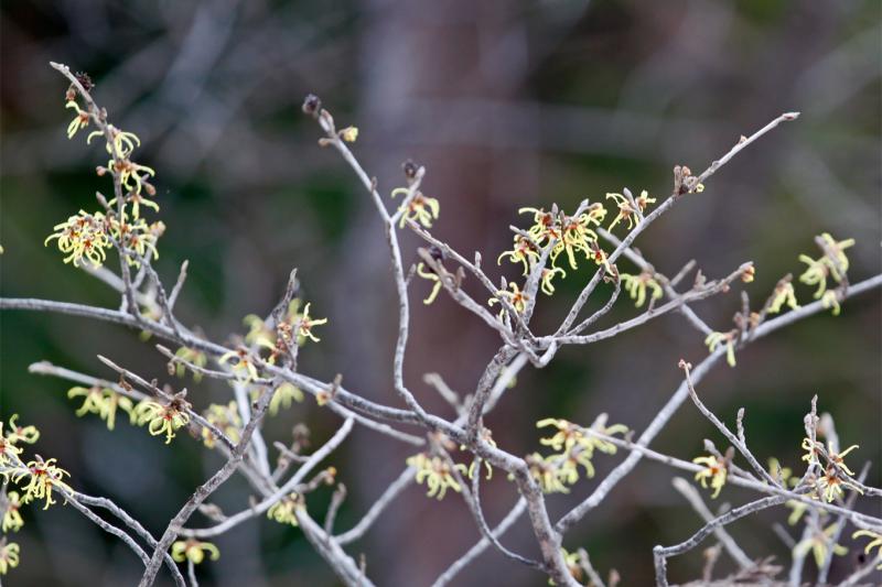 ▼白鷹山南側山稜:「マンサク」の花が見頃でした。