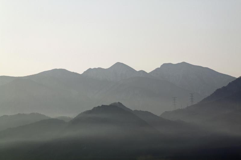 ▼朝もやタナビく「蔵王雁戸」が望めた。