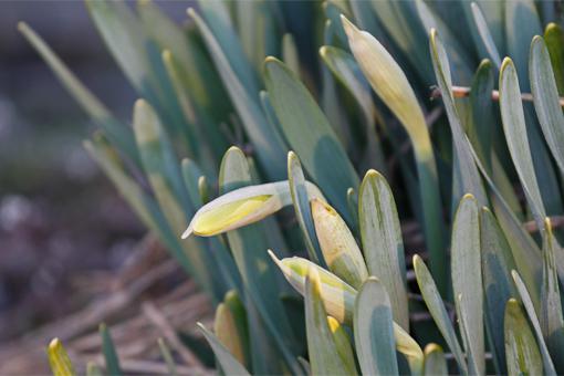 ▼スイセン、今日は咲くかなぁ???。