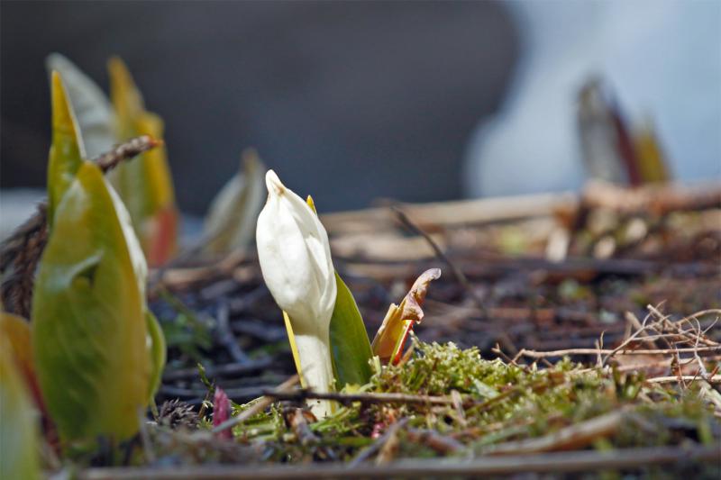 山形市西部山稜:某所で見つけた、今年お初の「ミズバショウ」です。