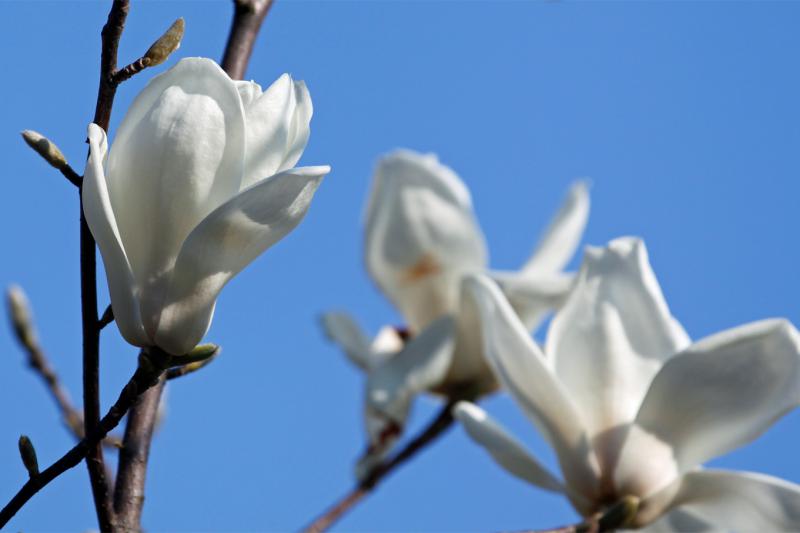 ノッケは真っ白なモクレン。(頃合い的に、ちょっと開き過ぎかなぁ?)