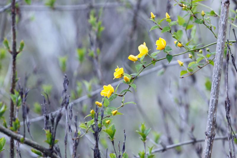山形市郊外・・・、藪の中に「ヤマブキ(山吹)」が咲き始めているのを見かけました。