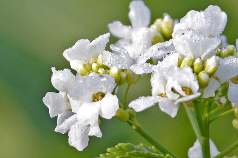 ホースラディッシュの白い花に、朝露に濡れて綺麗だった。