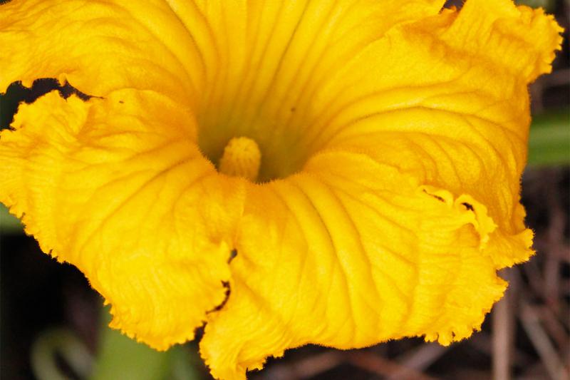 今朝は、かぼちゃの花の黄色が、あまりに鮮やかだった。