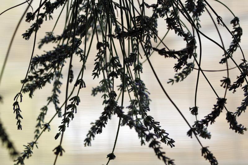 カミさんが庭のラベンダーを切って来て、窓辺に逆さに吊るしておいた。