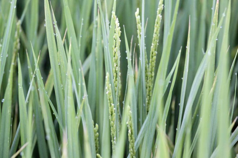 今朝は、田のイネに花が咲き始めているのに気が付いた。