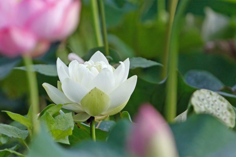 ▼白い「古代ハス」が極楽浄土っぽかったでした。