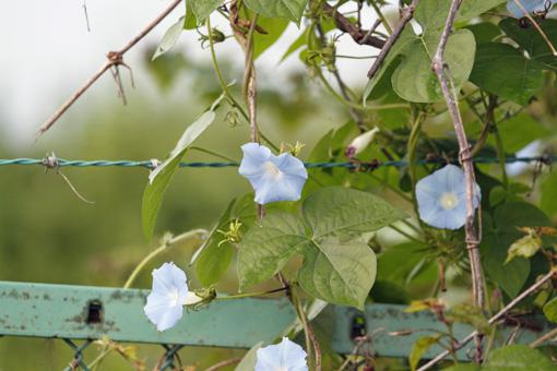 有刺鉄線に青いヒルガオの様な花が咲いていました。(何て言ううんだろう?)