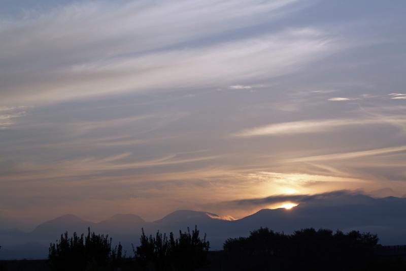 奥羽山脈から昇る朝日もキラキラしていて、その上空はもう秋の空ですね。
