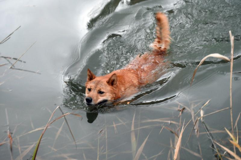 水の苦手な日本犬系雑種(北海道犬混)なのである。