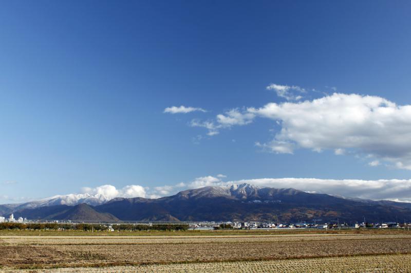 ▼晴れ上がって、蔵王山系「龍山」と「雁戸」。