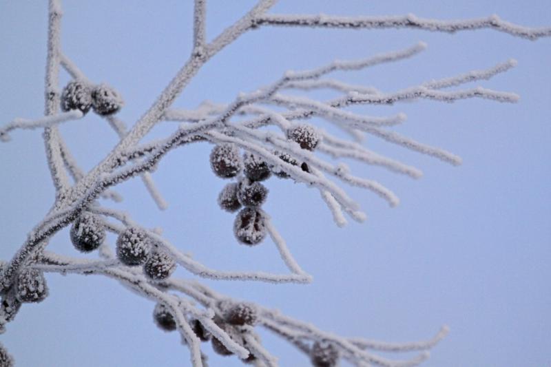 棗(ナツメ)の赤黒い実も、凍っていた。