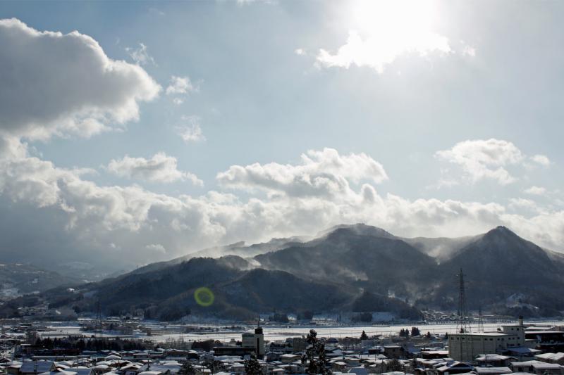 ▼強風の三吉山(上山市)