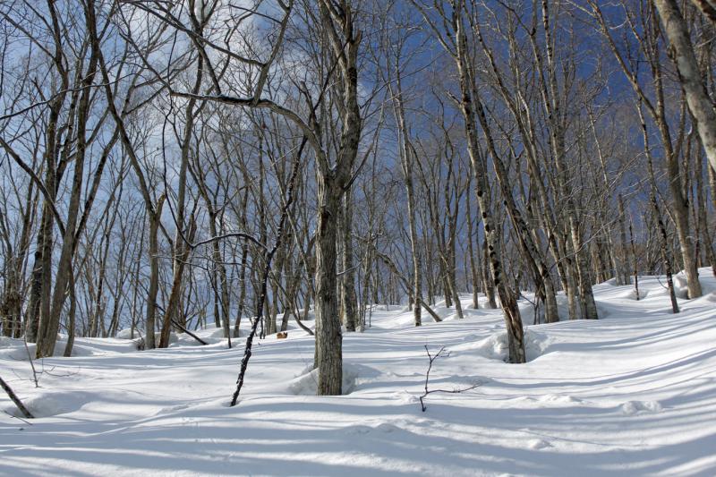 雪が堅いと滑落注意。立木に頭を打っては洒落にならんし。