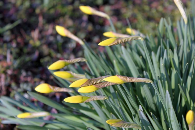 週明け早々の朝ではあるが、スイセンの花芽もずいぶん膨らんで、