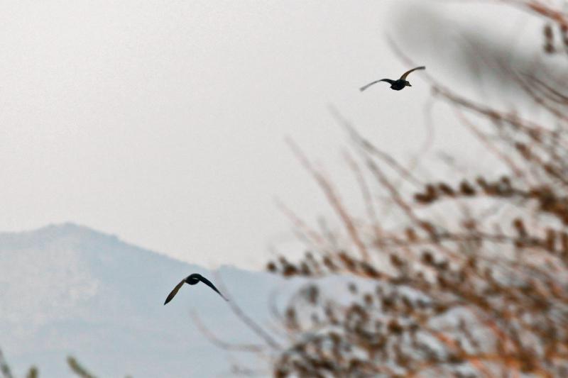 先ずはファインダーでカモを捉え、その動きに合わせてカメラを振りつつ