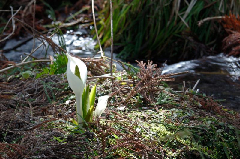今日のおハナは、人知れぬ沢沿いに咲く「水芭蕉」という事にした。