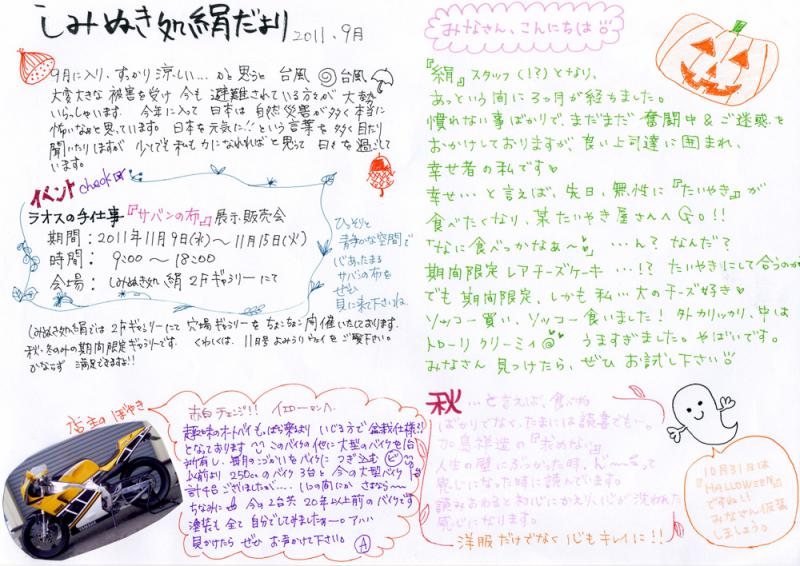 ▼しみぬき処絹便り2011年9月号
