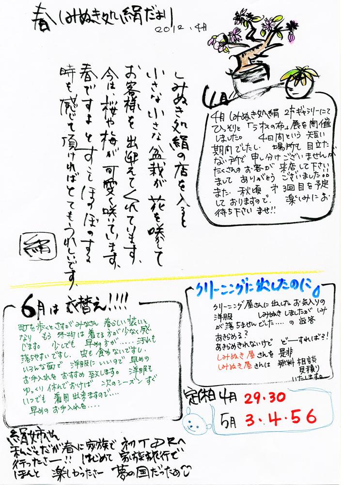 ▼しみぬき処絹便り2012年4月号