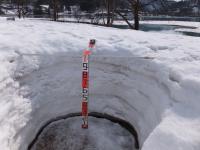 白川湖パークゴルフ場、ただいまの残雪量70cmです。もうちょいですね。