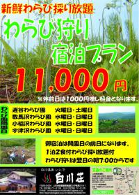 中津川はまだまだ雪が有ります(汗) しかし、雪は必ず融けます!!雪が融ければ・・・そう!!山菜の季節到来です!!! 今年も毎年恒例の「わらび狩り宿泊プラン」の御紹介です!! わらび園の開園予定は5月末頃です。(予定) 大雪の年は山菜が豊富と言われます。 みなさん、どうぞいっぱい採っておごえ〜!! |