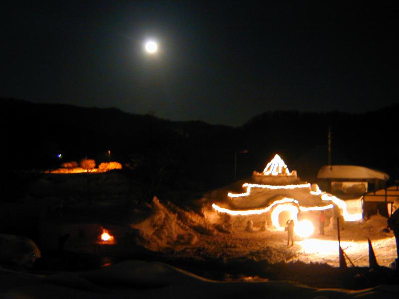 2月4日より始まった雪灯り暖回廊(あったかいろう)のメイン会場となる白川荘の子供広場。