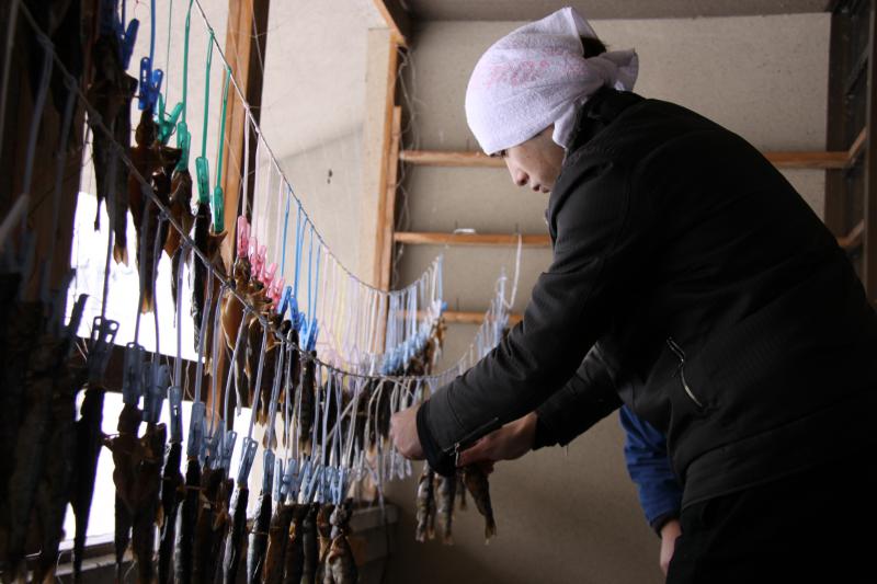 連日寒い日が続くこの季節になると、ヤマメのどぶろく寒風干しが始まります。