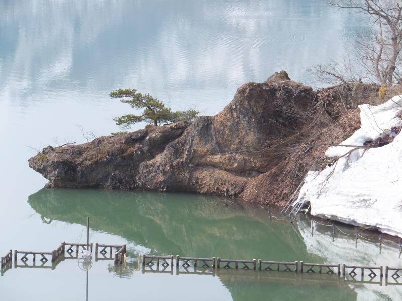 このところの暖かさで雪解けも進み、白川ダム湖は満水状態です。