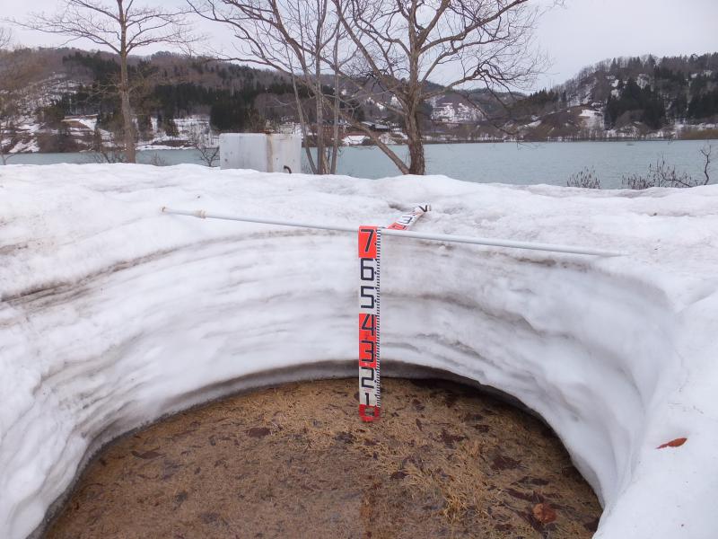 白川湖パークゴルフ場、ただいまの残雪量70cmです。もうちょいですね。