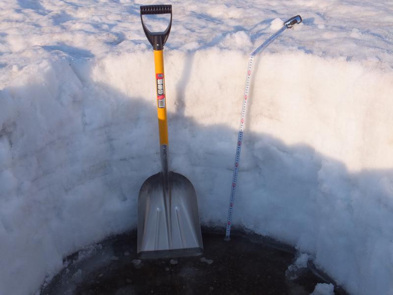 それでもご覧のとおり、パークゴルフ場のコース上には今日現在で85cmの残雪がありました。今週もどうやら好天が続く予報なので、一日10cmのペースで解けるとすれば、あと10日位かかるかなぁ。それから整備してゴールデンウィークオーブンに間に合うといいんですがねぇ。