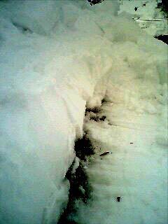 かやぶきの屋根を透過して煙の跡が屋根の雪に滲んでいます。このへんがイブ臭いようです。