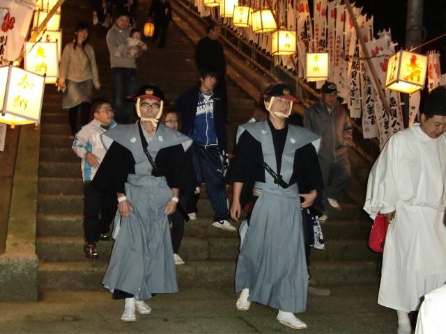 御輿が階段から下りてきた後に武士(?)家来(?)らしき出で立ちの方が歩いてきました。