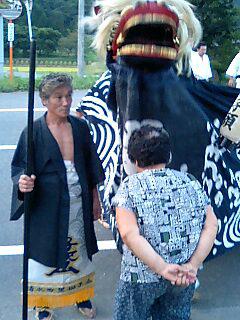 お休み処で清水町黒獅子会の警護を交代し、伊佐沢舘久保有志の頭に交代しました。次のお休み処の警護掛かりはどうなるでしょうか!流派の違う異種格闘技決戦のようですが・・いかんせんこの警護いささか高齢です!