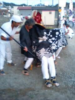 流派が違う上、高齢ぎみの警護様。へっぴり腰は止むを得ません。選りによってヘビー級の獅子振りが警護掛かりしてしまいました。