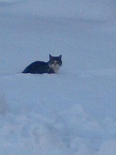 それで車に驚いた猫が新雪でほだこいで「ひしゃまし」してました。