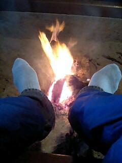 直火で暖まろうとしていて