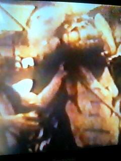 映像では獅子の顔を覆う毛が歯打ちで現れ、一瞬見えています。
