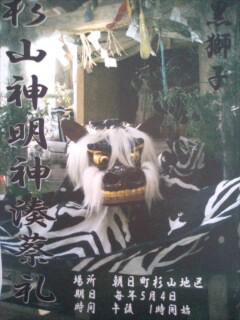 朝日町杉山公民館に修理の獅子頭をお届けいたしました。そこで獅子のポスターを発見!なかなか良い写真だと思いませんか?