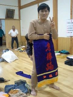 先週行われた伊佐沢念仏踊りの久保桜夜桜公演は、あいにくの雨の中小学校の体育館で行われました。今年、念仏踊り保存会に二人の新人が入会し、しばらく途絶えていた相撲役が復活しました。若々しくシワもなく「やんばいだ(大変良い)」と大好評でした。ラクダの上下は意外でしたが化粧回しが光っておりました。カツラは被らなかったようです。以前彼は小学校の念仏踊りで踊りを経験しているためスンナリデビュー出来たようです。