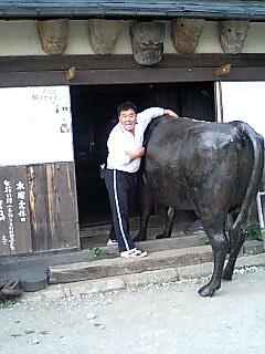 密かにビニールハウスに飼っていた牛を獅子宿の二階に搬送しました!なにしろめっぽう軽いので狭い階段をひっくり返したり畳んだり、なんとかねじ込んで収めました。なんと!牛が二階から玄関を見下ろす摩訶不思議な空間が生まれました。牛科医のH君お手伝いありがとうございました。