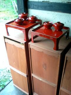 空き家になって解体するお隣の蔵にあったお膳セットを頂きました。かなり古い物ですが蔵に保存していたため歪みも少なく良い状態でした。その新調した当時の購入価格はかなり高価だったでしょうか〜。お椀は丁寧に和紙に包まれ、お膳は更に大事に布に包まれていました。古巣の家の解体する音を聞きながら、フト気が付くと寂しそうにお椀がカタリと音をたてました。
