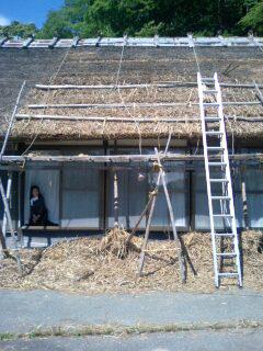 長井市上伊佐沢の民家で茅葺き屋根の葺き替え工事を行っていました。築三百年近くもの年月に耐え小高い山間地にいだかれひっそりと時を刻んでいます。茅葺き職人は暑さを避けて午後二時まで昼休みです。横浜から通っていらっしゃる家主の方は古民家やこの自然環境に惹かれ毎月訪れて通っていらっしゃるとか…玄関先で古民家談義に花が咲きちょっとのつもりが小一時間もお邪魔してしまいました。