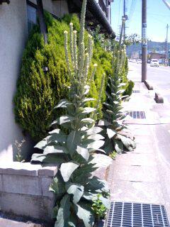 見たことの無い変な植物がにょきっと。外来種の植物でしょうか?葉っぱに毛が生えて無数の花芽が膨らんで不気味な繁殖力が伺えます!この植物知っている方いらっしゃいませんか?