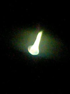 ははは〜火の玉花火でしたぁ〜。三女が買ってきた花火セットの一つです。針金の先に綿のような吸収布があって緑色の妖しい液体を染み込ませ着火いたします。映画の特撮などのパクリ商品かな?なかなかの不気味さです。