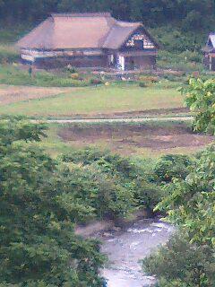 ちょっと離れてますが茅葺き民家が二軒仲良く佇んでいます。