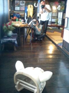 西洋から日本に写真技術が導入された当時、カメラで写真を撮られると魂まで抜かれるという風評が広がったと聞きます。ちょっと前までカメラを向けると「魂抜かれる!」って確かに嫌がる人いました。今日もカメラマン金子君がポートレート撮影にお父さんを助手に訪れました。流石にプロのお父さんは一枚上手。息子の考えていることを先に読んでしまって的確なアドレスを何気なく呟きます。獅子宿のいろんなスポットを把握し撮影計画を描いていました!