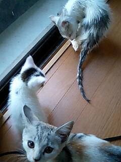 墨絵さんはお風呂がまんざら嫌いでもなさそうです。猫洗濯係は三女です。