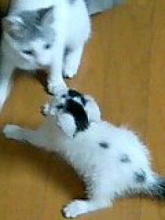 我が家にはカタカナの名前の猫はそぐわなかったのか、墨絵と絶句の和風モノクロコンビがじゃれあってます。