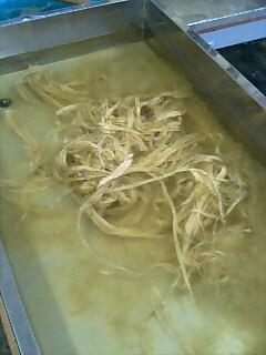 さて…和紙の材料コウゾではないかという率直な疑問に、紙漉の名人は繊維の柔軟さに疑問ありという事でした。